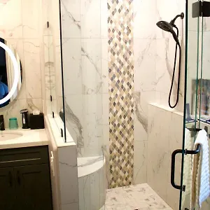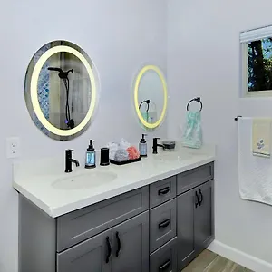 This Sedona villa can accommodate up to 4 guests. It has a bathroom with a walk-in shower and a separate toilet.